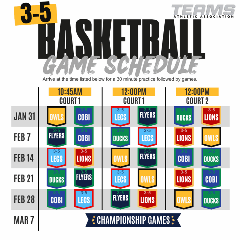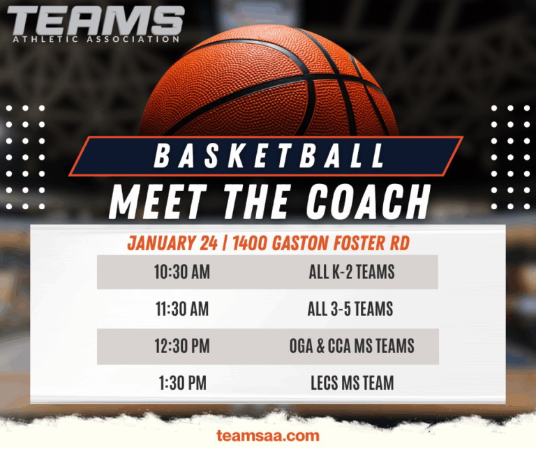 TEAMSAA Basketball begins Saturday, Jan. 24th at Dover Shores Rec Center! Come out ready to practice and meet the coaches! See times below.
